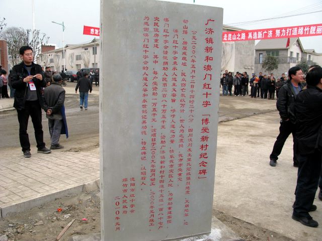 澳門紅十字會中央委員會主席黃如楷、中央委員會委員劉永年、理事長曹國希醫生、副理事長馬健華與澳門街坊總會聯合總會副理事長李卓君等,共同主持四川綿竹市廣濟鎮澳門紅十字博愛新村的入住儀式並向187戶受益戶捐贈電飯煲 -- 2010_1_11_20_23_596.jpg