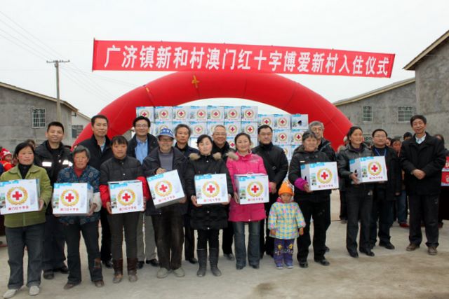 澳門紅十字會中央委員會主席黃如楷、中央委員會委員劉永年、理事長曹國希醫生、副理事長馬健華與澳門街坊總會聯合總會副理事長李卓君等,共同主持四川綿竹市廣濟鎮澳門紅十字博愛新村的入住儀式並向187戶受益戶捐贈電飯煲 -- 17.jpg
