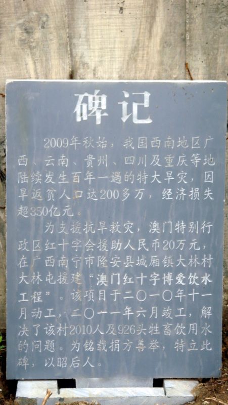 廣西旱災 -- 城廂鎮大林村大林屯 碑文內容
