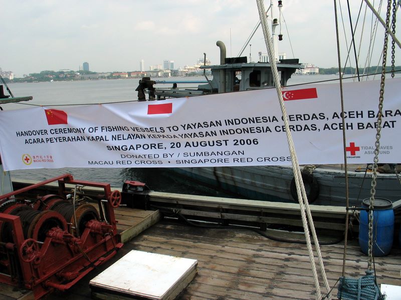 2006/08/20 Mr. Ung Ho-Ian, member of the Central Council of Macau Red Cross handing over 3 donated fishing vessels in Singapore to the communities affected by the Tsunami in India Ocean -- img_7694.jpg