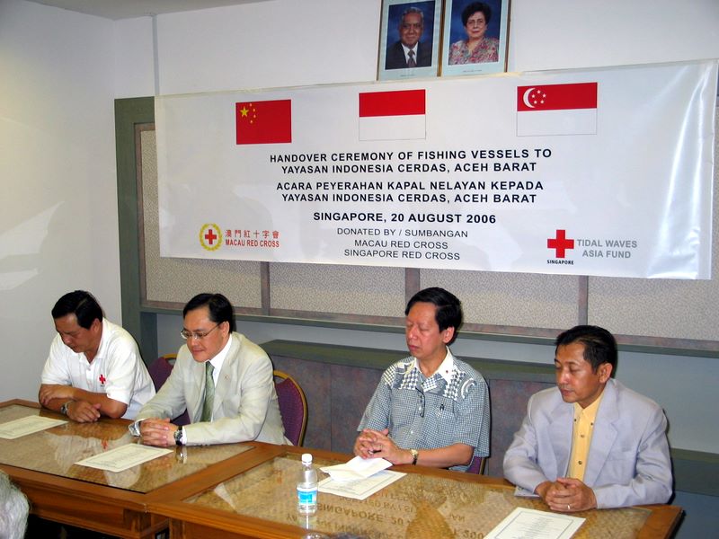 2006/08/20 Mr. Ung Ho-Ian, member of the Central Council of Macau Red Cross handing over 3 donated fishing vessels in Singapore to the communities affected by the Tsunami in India Ocean -- 7.jpg