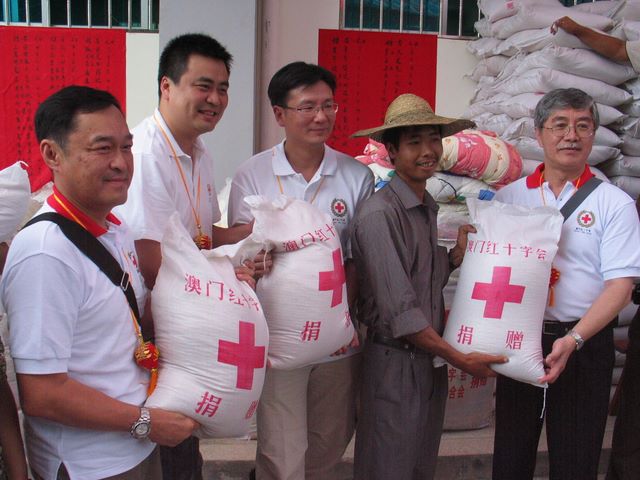 2007/7/31 Dr. Chou Kuok-Hei, President of the Directive Council, Mr. Quin Va, Vice President of the Directive Council and Mr. Lau Veng Lin, member of the Central Council, Macau Red Cross at a relief aid distribution event in Yunnan province -- 1.jpg