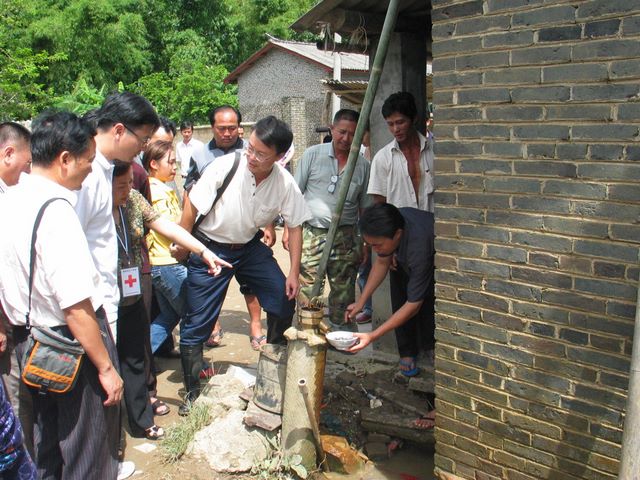 2007/7/31 Dr. Chou Kuok-Hei, President of the Directive Council, Mr. Quin Va, Vice President of the Directive Council and Mr. Lau Veng Lin, member of the Central Council, Macau Red Cross at a relief aid distribution event in Yunnan province -- 4.jpg