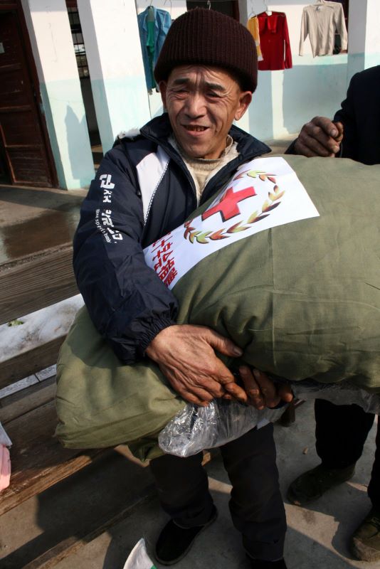 Representative of Macau Red Cross handing out relief materials to victims affected a blizzard in Tongshan County, Hubei province. -- 13.jpg