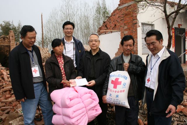 2008/04 Mr. Eddie Wong Yue-Kai, President of the Central Council and President of Directive Council, Macau Red Cross distributing rice and inspecting damages caused by blizzards in Hubei province -- img_1478.jpg