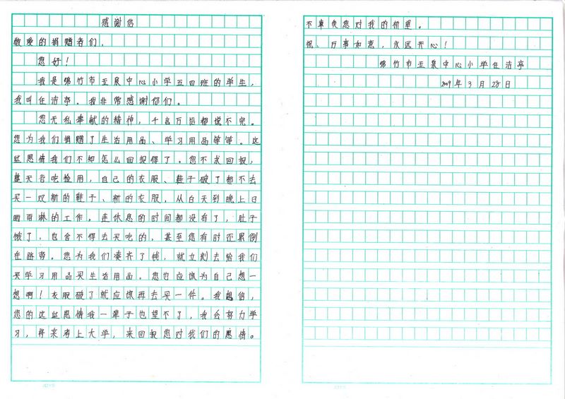 Students of Yuquan Township Center Primary School in Mianzhu and Tashui Township 2nd Primary School in Anxian of Mianyang sent us their letters of thanks and drawings. -- 20090417165458_00001.jpg