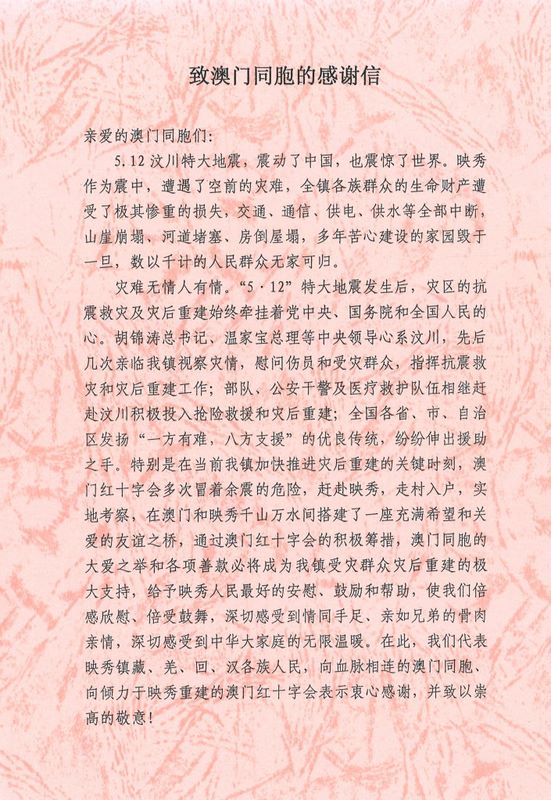 Letters of Thanks from Yingxiu Township and Jiang You Township of Sichuan. -- 20090417165323_00002.jpg