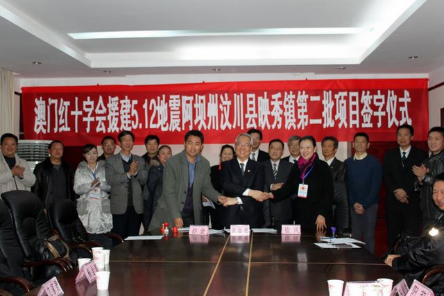 2010/1/23 Mr. Eddie, Wong Yue-Kai President of the Central Council, Macau Red Cross signs a construction agreement with the local government officials and village representatives, for a Macau Red Cross Fraternity Village at Yingxiu township, Wenchuan county in Sichuan province. -- 12.jpg