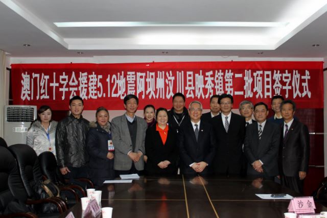 2010/1/23 Mr. Eddie, Wong Yue-Kai President of the Central Council, Macau Red Cross signs a construction agreement with the local government officials and village representatives, for a Macau Red Cross Fraternity Village at Yingxiu township, Wenchuan county in Sichuan province. -- 13.jpg