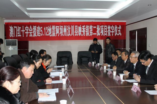 2010/1/23 Mr. Eddie, Wong Yue-Kai President of the Central Council, Macau Red Cross signs a construction agreement with the local government officials and village representatives, for a Macau Red Cross Fraternity Village at Yingxiu township, Wenchuan county in Sichuan province. -- 4.jpg