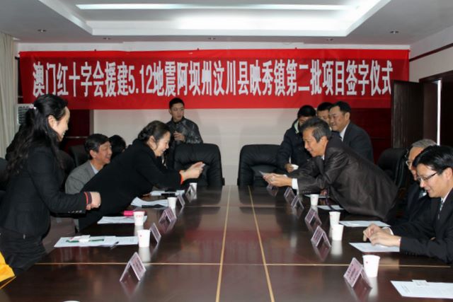 2010/1/23 Mr. Eddie, Wong Yue-Kai President of the Central Council, Macau Red Cross signs a construction agreement with the local government officials and village representatives, for a Macau Red Cross Fraternity Village at Yingxiu township, Wenchuan county in Sichuan province. -- 7.jpg