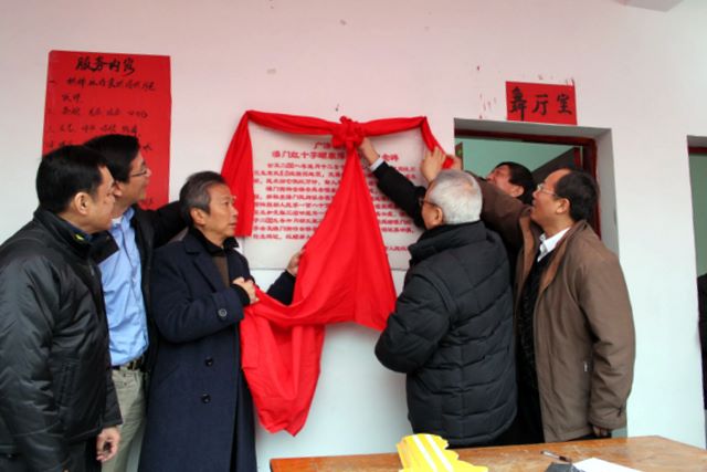 2010/1/24 Mr. Eddie, Wong Yue-Kai President of the Central Council, Mr. Lau Veng-Lin, Central Council member, Dr. Philip, Chou Kuok-Hei, President and Mr. Quin Va, Vice President of the Directive Council of Macau Red Cross, joined by Mr. Paul, Lei Cheok-Kuan, Vice Director of the União Geral das Associações dos Moradores de Macau to officiate the completion ceremony of six Macau Red Cross Fraternity Multi-purposes Centers at Guangji Township of Mianzhu county in Sichuan province. -- 13.jpg
