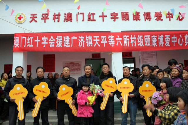 2010/1/24 Mr. Eddie, Wong Yue-Kai President of the Central Council, Mr. Lau Veng-Lin, Central Council member, Dr. Philip, Chou Kuok-Hei, President and Mr. Quin Va, Vice President of the Directive Council of Macau Red Cross, joined by Mr. Paul, Lei Cheok-Kuan, Vice Director of the União Geral das Associações dos Moradores de Macau to officiate the completion ceremony of six Macau Red Cross Fraternity Multi-purposes Centers at Guangji Township of Mianzhu county in Sichuan province. -- 21.jpg