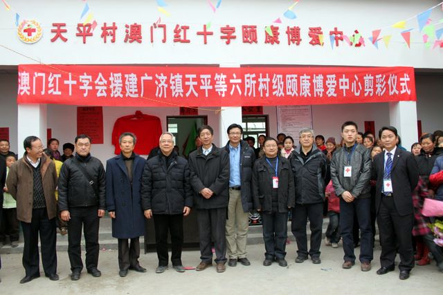 2010/1/24 Mr. Eddie, Wong Yue-Kai President of the Central Council, Mr. Lau Veng-Lin, Central Council member, Dr. Philip, Chou Kuok-Hei, President and Mr. Quin Va, Vice President of the Directive Council of Macau Red Cross, joined by Mr. Paul, Lei Cheok-Kuan, Vice Director of the União Geral das Associações dos Moradores de Macau to officiate the completion ceremony of six Macau Red Cross Fraternity Multi-purposes Centers at Guangji Township of Mianzhu county in Sichuan province. -- 5.jpg