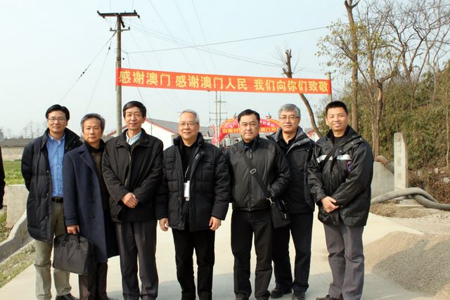 2010/1/24 Mr. Eddie, Wong Yue-Kai President of the Central Council, Mr. Lau Veng-Lin, Central Council member, Dr. Philip, Chou Kuok-Hei, President and Mr. Quin Va, Vice President of the Directive Council of Macau Red Cross, joined by Mr. Paul, Lei Cheok-Kuan, Vice Director of the União Gerald as Associações dos Moradores de Macau to officiate the moving-in ceremony of the Macau Red Cross Fraternity Village at Tashui township, Anxian of Sichuan province.