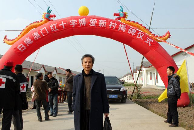 2010/1/24 Mr. Eddie, Wong Yue-Kai President of the Central Council, Mr. Lau Veng-Lin, Central Council member, Dr. Philip, Chou Kuok-Hei, President and Mr. Quin Va, Vice President of the Directive Council of Macau Red Cross, joined by Mr. Paul, Lei Cheok-Kuan, Vice Director of the União Gerald as Associações dos Moradores de Macau to officiate the moving-in ceremony of the Macau Red Cross Fraternity Village at Tashui township, Anxian of Sichuan province.