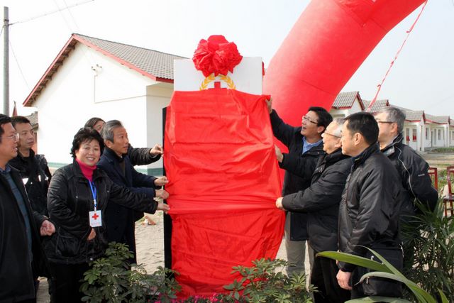 2010/1/24 Mr. Eddie, Wong Yue-Kai President of the Central Council, Mr. Lau Veng-Lin, Central Council member, Dr. Philip, Chou Kuok-Hei, President and Mr. Quin Va, Vice President of the Directive Council of Macau Red Cross, joined by Mr. Paul, Lei Cheok-Kuan, Vice Director of the União Gerald as Associações dos Moradores de Macau to officiate the moving-in ceremony of the Macau Red Cross Fraternity Village at Tashui township, Anxian of Sichuan province.