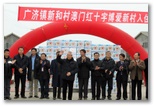 2010/1/24 Mr. Eddie, Wong Yue-Kai President of the Central Council, Mr. Lau Veng-Lin, Central Council member, Dr. Philip, Chou Kuok-Hei, President and Mr. Quin Va, Vice President of the Directive Council of Macau Red Cross, joined by Mr. Paul, Lei Cheok-Kuan, Vice Director of the União Gerald as Associações dos Moradores de Macau to officiate the moving-in ceremony of Macau Red Cross Fraternity Village, Guangji Township of Mianzhu county in Sichuan province. They also donated electric rice cookers to 187 families. (23 圖像)