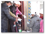 The special convoy carrying relief materials acquired by Macau Red Cross in Xining, Qinghai has arrived in Yushu. Truckloads of food, clothing and personal hygiene items were immediately distributed to some 400 students of the Yushu Orphanage School. (24 圖像)
