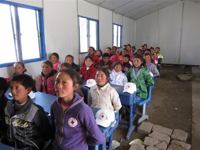 2010/5/3 The special convoy carrying relief materials acquired by Macau Red Cross in Xining, Qinghai has arrived in Yushu. Truckloads of food, clothing and personal hygiene items were immediately distributed to some 400 students of the Yushu Orphanage School. -- 12.jpg