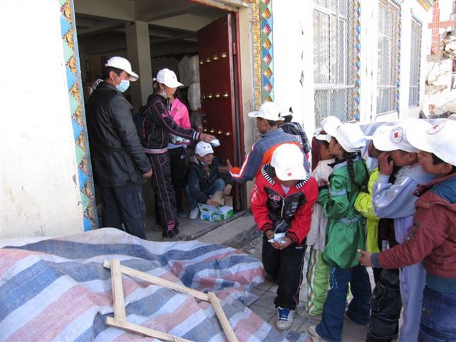 2010/5/3 The special convoy carrying relief materials acquired by Macau Red Cross in Xining, Qinghai has arrived in Yushu. Truckloads of food, clothing and personal hygiene items were immediately distributed to some 400 students of the Yushu Orphanage School. -- 17.jpg