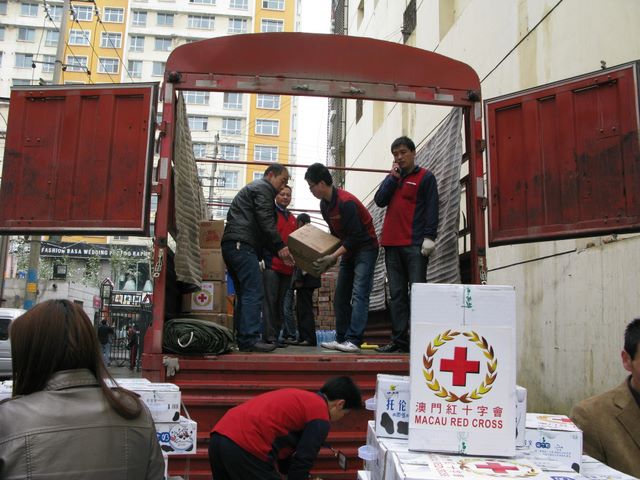 2010/4/20 Mr. Owen Wong, Head of the Disaster Relief Affairs Department of Macau Red Cross, made a special trip to Xi'ning to acquire a value of RMB220,000 relief materials for providing urgent needs of some 400 orphans in an orphanage school in Yushu - epicenter of the devastating 4.14 Qinghai earthquake. The supply, which includes food, clothing and personal hygiene items, has been dispatched to the orphanage school by a special convoy. -- img_1602.jpg