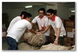 Volunteers and staff of Macau Red Cross packing some of the garments to be shipped to Yushu. (5 圖像)
