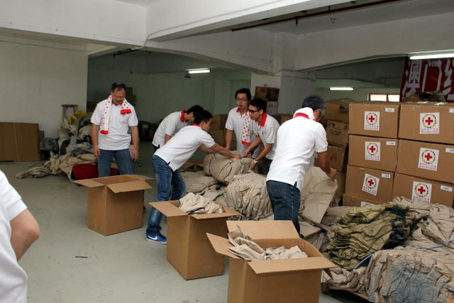 Volunteers and staff of Macau Red Cross packing some of the garments to be shipped to Yushu. -- img_0367.jpg