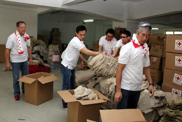 Volunteers and staff of Macau Red Cross packing some of the garments to be shipped to Yushu. -- img_0370.jpg
