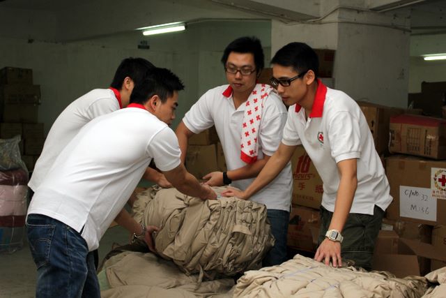 Volunteers and staff of Macau Red Cross packing some of the garments to be shipped to Yushu. -- img_0374.jpg