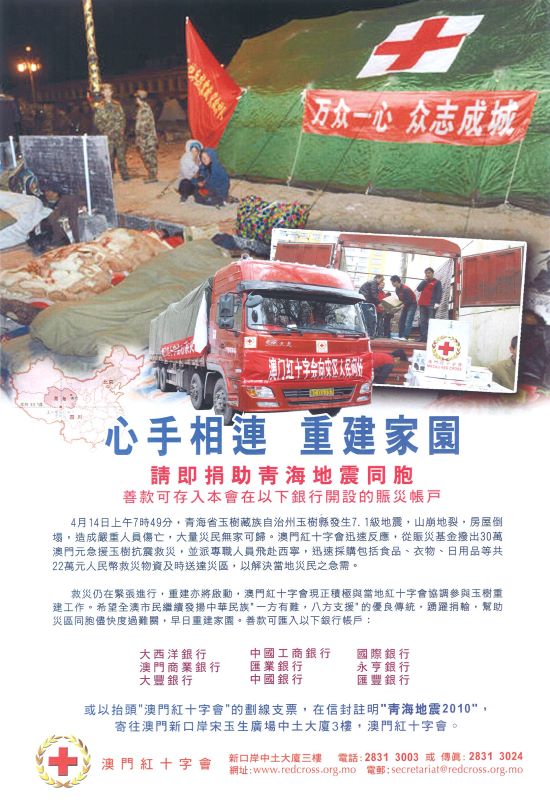 cash by post. Kindly make a cross check, payable to Macau Red Cross,