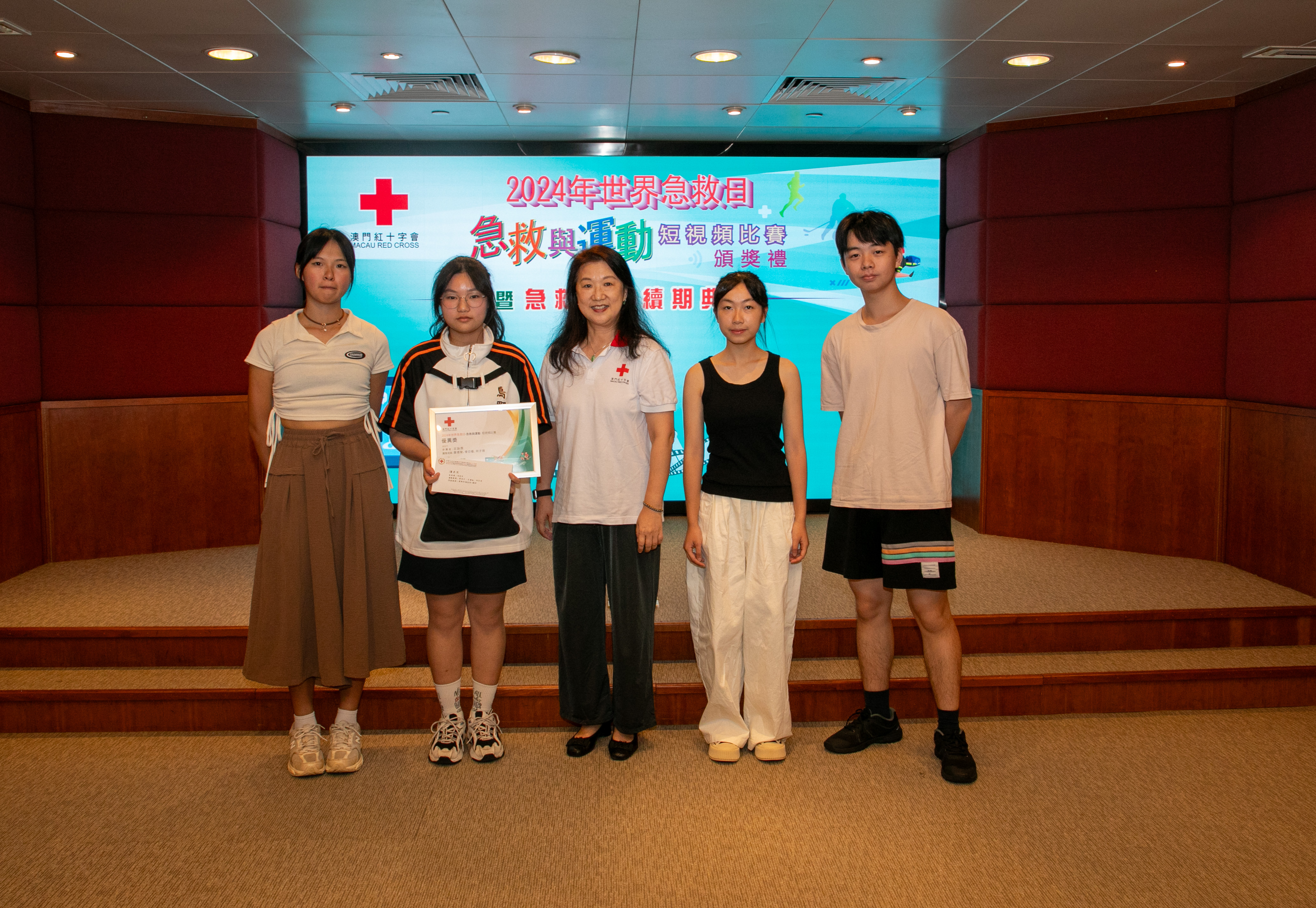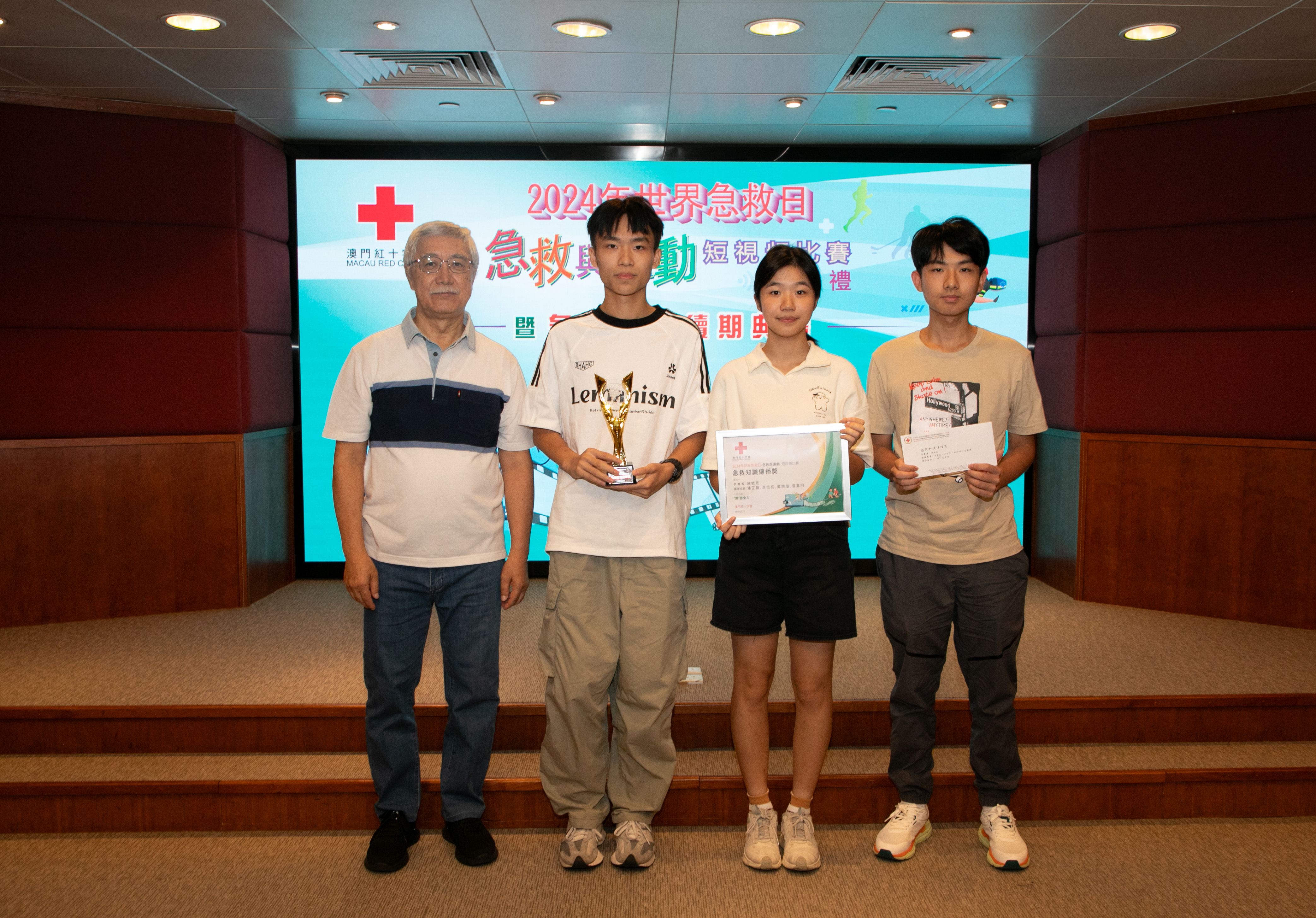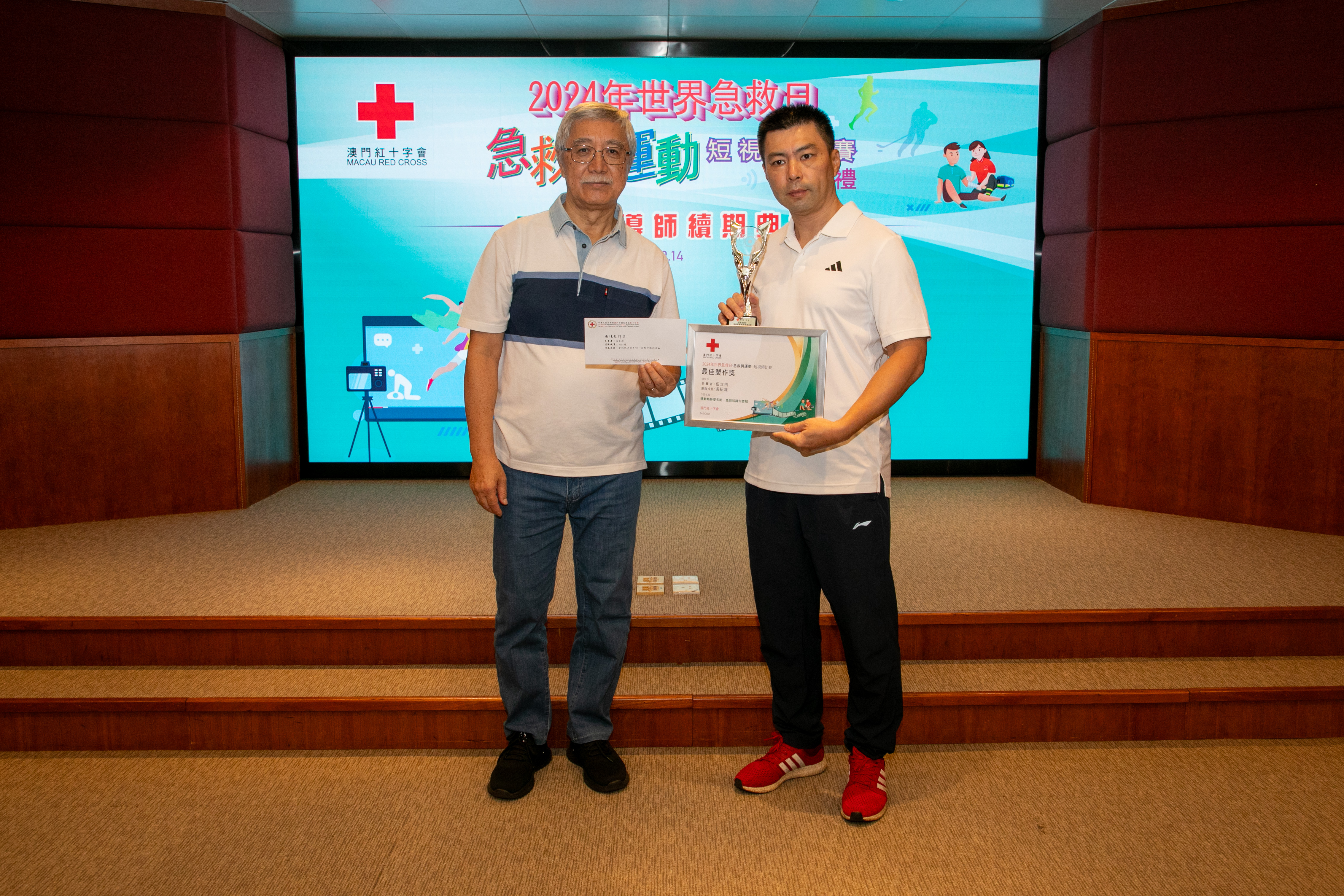 每年9月的第二個星期六是「世界急救日」,各國紅十字會、紅新月會都會舉辦各種活動來紀念這一天,希望透過活動呼籲各國重視急救知識的普及,讓更多的人認識急救、掌握急救,當有意外發生時都可以用急救技能挽救生命將傷害減低。今年「世界急救日」的主題是「First Aid and Sports急救與運動」,澳門紅十字會特別舉辦以“急救與運動”為主題的短視頻比賽,並於9月14日世界急救日當天在澳門紅十字會總辦事處,舉行了“2024年世界急救日短視頻比賽頒獎禮”,同場亦為急救導師頒發了續期證書,澳紅會理事長馬健華參加了典禮並為獲獎者頒獎。