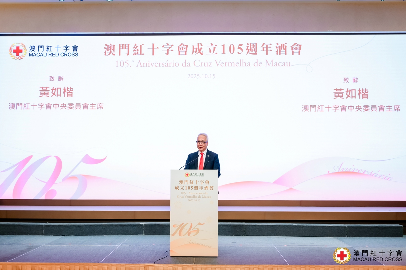 澳門紅十字會於10月15日舉行成立105週年酒會,澳門紅十字會中央委員會主席黃如楷表示,站在105周年的新起點,澳門紅十字會將順應時代發展要求,進一步提升人道服務能力,推動各項工作的新發展,以更及時、更貼切的方式服務廣大市民,為推動澳門社會繁榮穩定,和諧發展,增進人民福祉發揮積極作用。