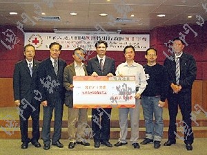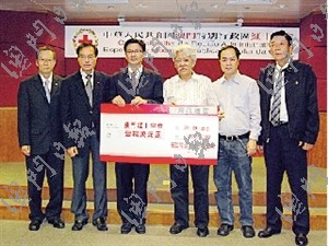 昨日下午五時,新聲舞動文娛協會捐款十萬○八千九百元,宏益電召的士有限公司捐出十萬元,醫療人員協會捐款五萬九千○三十五元,由澳門紅十字會理事長曹國希、委員兼義務秘書吳川柱、委員兼禮賓司王清軒、委員李松佳及總監麥柱流代表接收。至昨日止,善款數字已達一千二百八十三萬○五十五元。