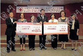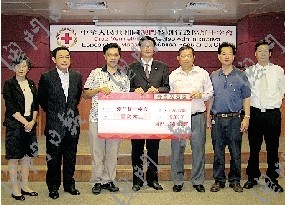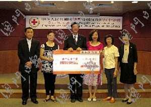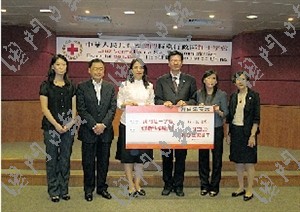 自澳門紅十字會發出賑災募捐呼籲以來,社會各界紛紛響應。截至昨日,各界捐出善款累計達九百○三萬八千五百○七元五角。昨日下午四時至五時,七個社團及政府部門相繼前往澳紅會送交善款,包括:凱旋門娛樂集團有限公司二十萬元、母親會十萬元、母親會領導成員八萬元、民政總署員工五萬四千三百三十元、瑞權工程有限公司員工五萬元、澳門木蘭拳協會一萬二千七百九十五元及澳門三水同鄉會一萬元,由澳紅會中央委員會主席黃如楷,理事長曹國希,委員兼禮賓司劉永年,理事兼義務秘書林琦玲,總監麥柱流代表接收。